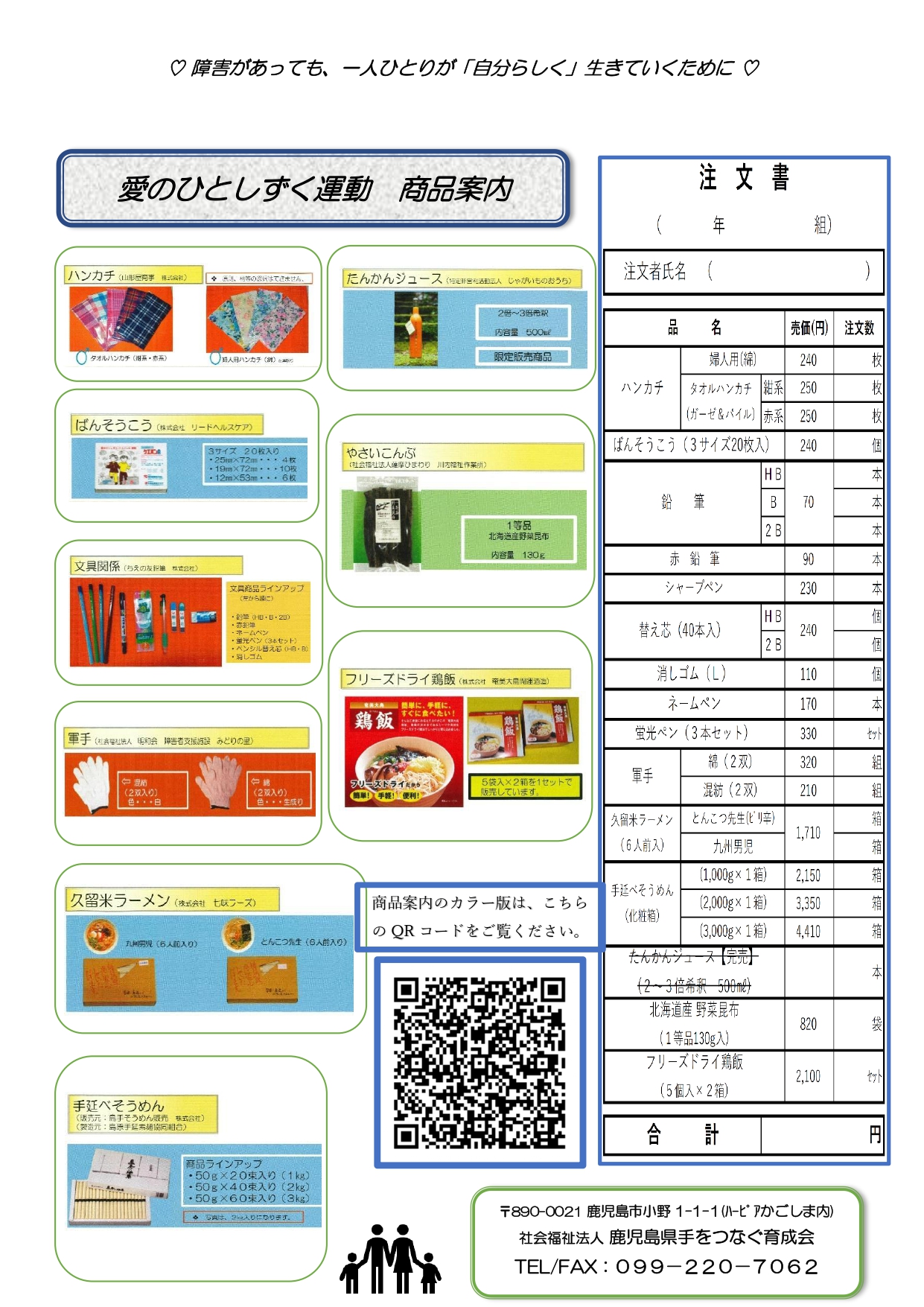 ❷「商品案内・注文書」 PDFファイル ➡ 愛のひとしずく 商品案内&注文書(学校用)QRコード付き